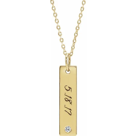 14K Yellow Gold Nameplate Bar Necklace with Diamond or Birthstone Accent