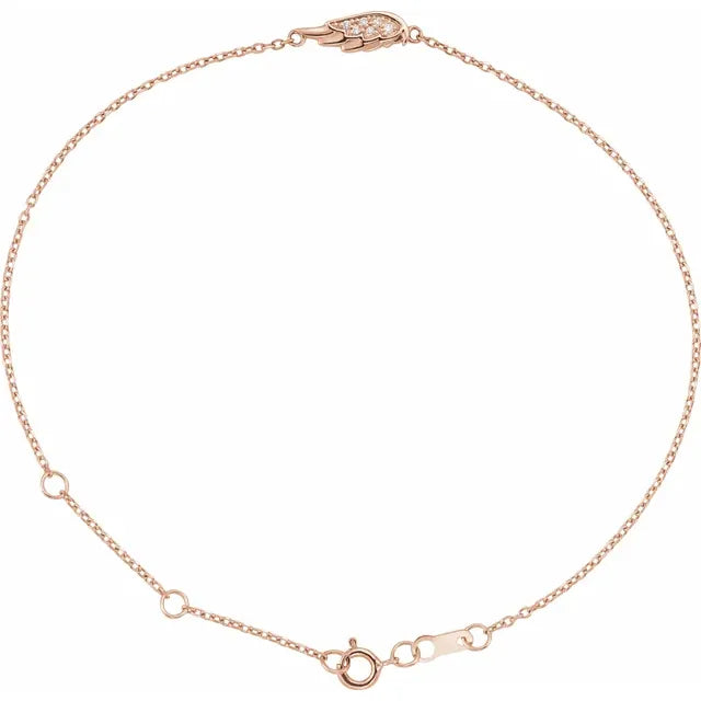 14K Gold .015 CTW Natural Diamond Angel Wing Bracelet