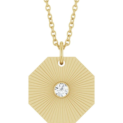 14K Gold Diamond Retro Radiant Design Medallion Pendant
