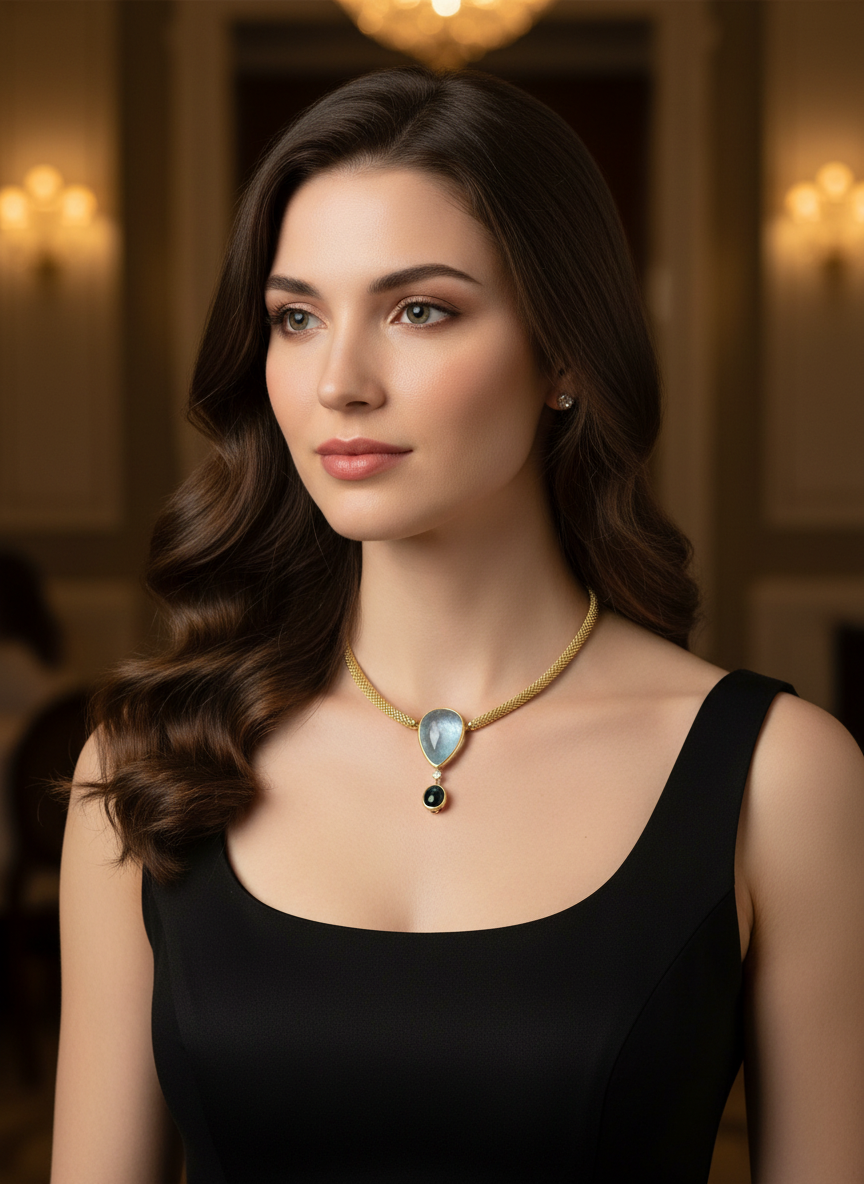 Vario Clasp Aquamarine, Tourmaline and Diamond Pendant