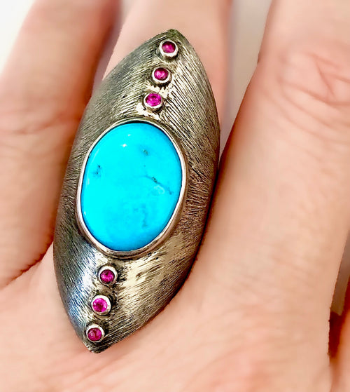 24K Gold "Dylan" Stackable band with Sleeping Beauty Turquoise