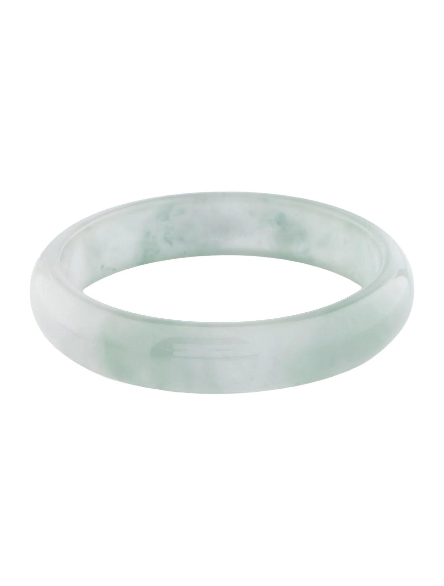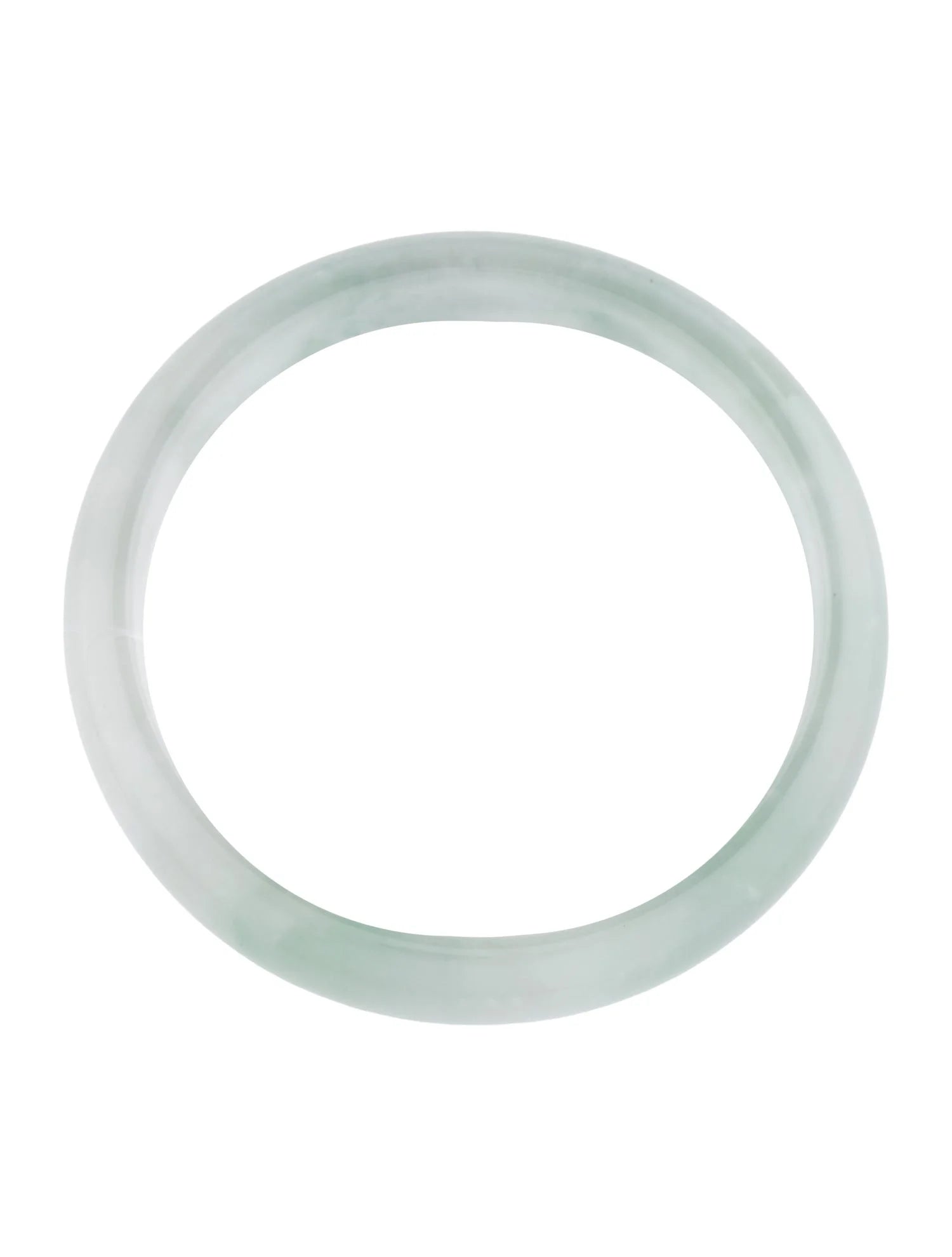 Graceful and timeless, this Jadeite Bangle Bracelet showcases the natural beauty of jadeite in both half round shape. Expertly shaped from a single jadeite stone, it features a balanced 0.5-inch width and a comfortable 7.5" inside circumference, ideal for medium to larger wrist sizes. Jade is believed for protection and bringing good luck.