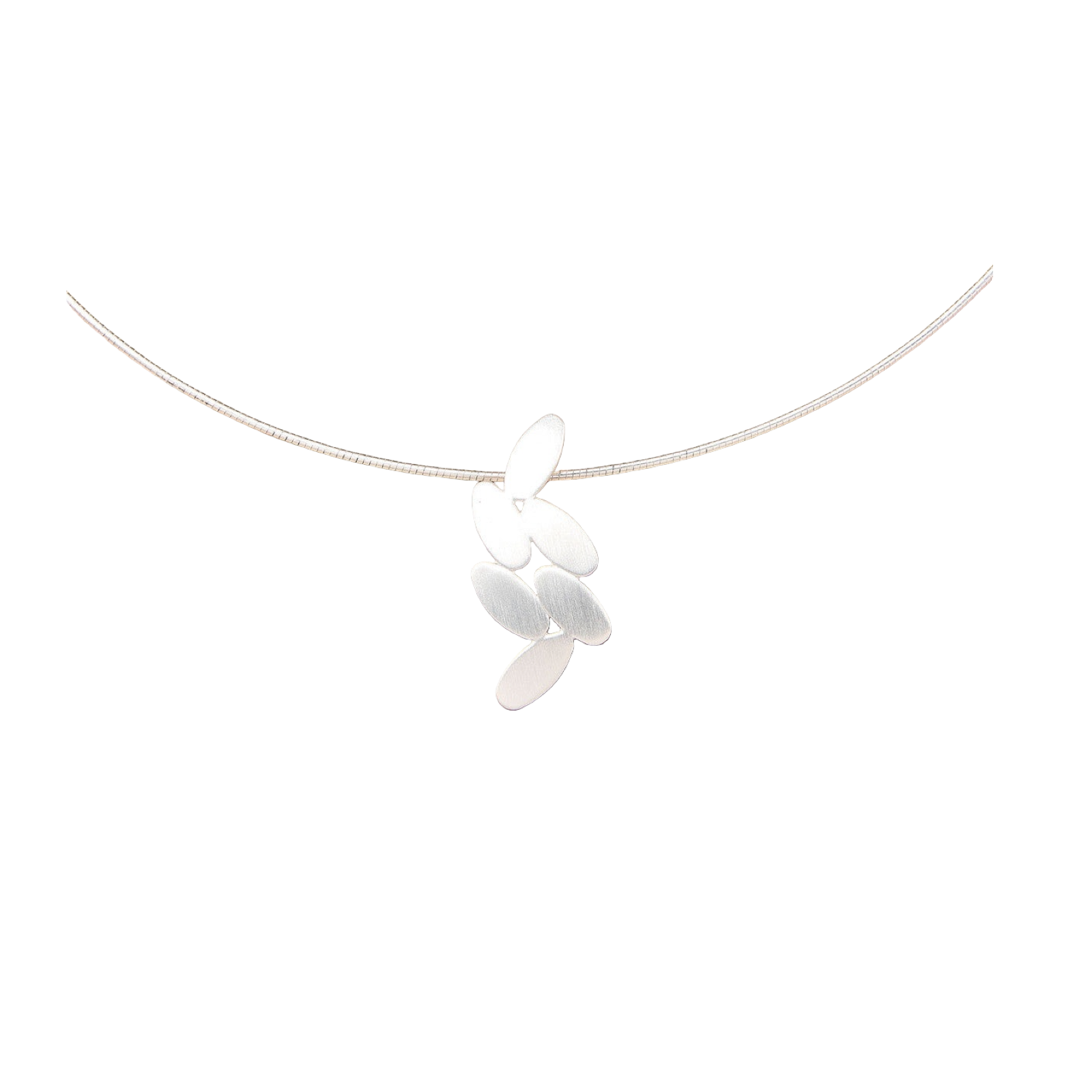 This Rice pendant is artistically designed with a rice shape silver motifs. Delicate and lightweight, this subtle pendant adds a touch of sophistication and elegance to any occasion. Pendant is 27 mm x 13 mm. It comes with a 18" long silver omega chain.