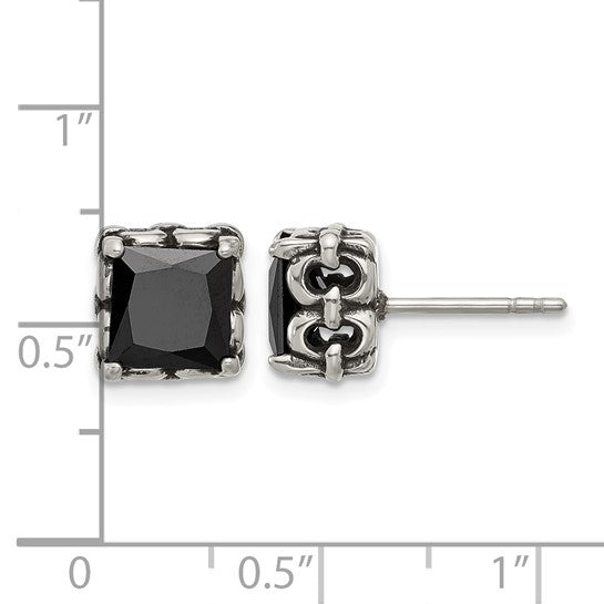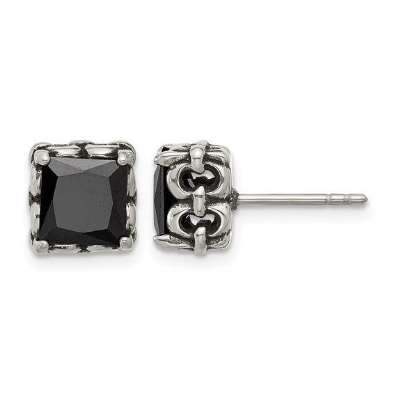 Black CZ Stud Earrings | Stainless Steel Square