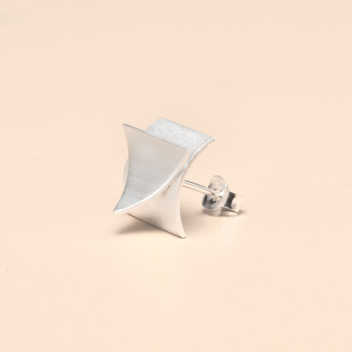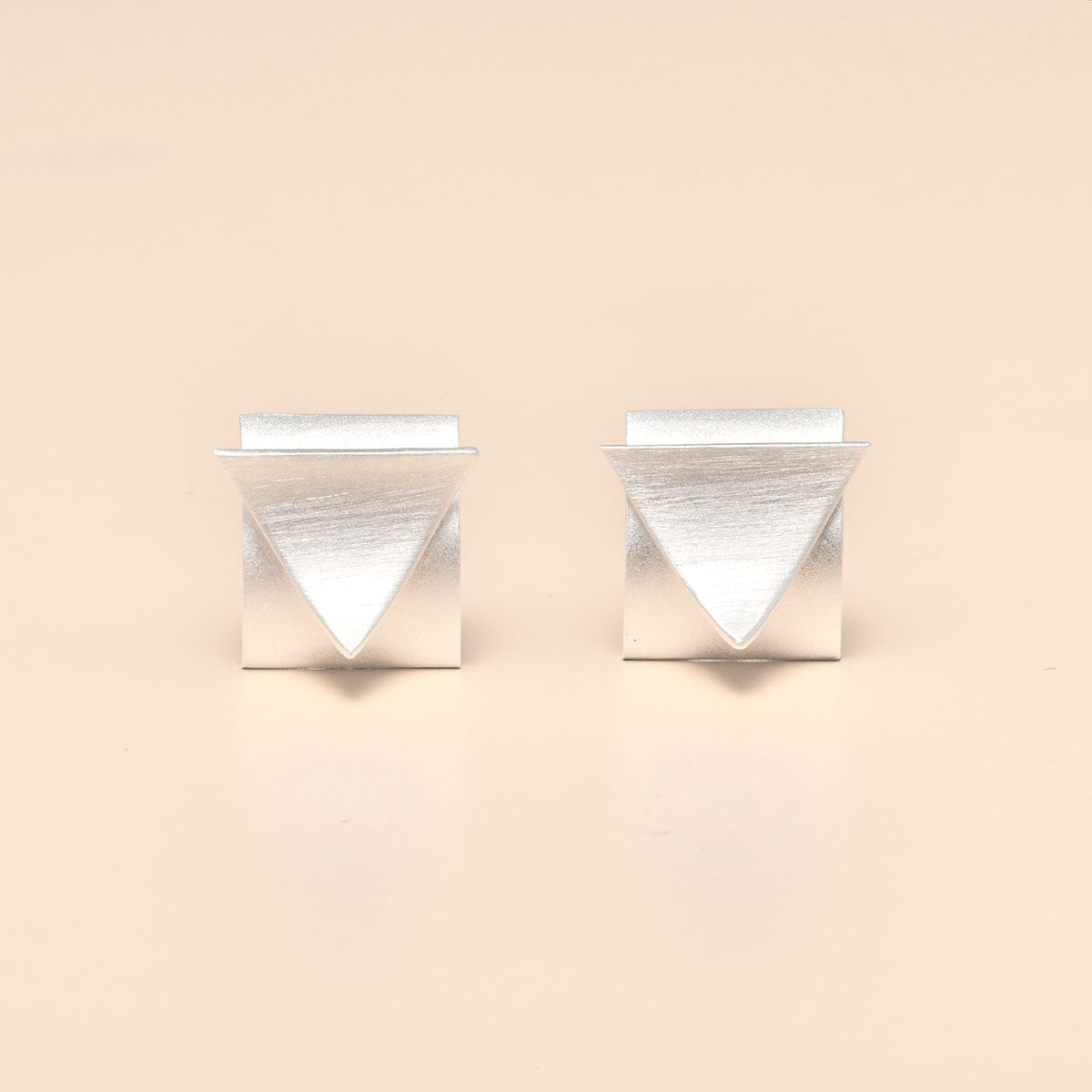 Bold lines, sculptural form. These sterling‐silver studs feature a brushed triangular element layered over a square base, creating a striking geometric silhouette. Minimalist yet expressive, they add a contemporary edge to any look — perfect for everyday style or a statement accent.
