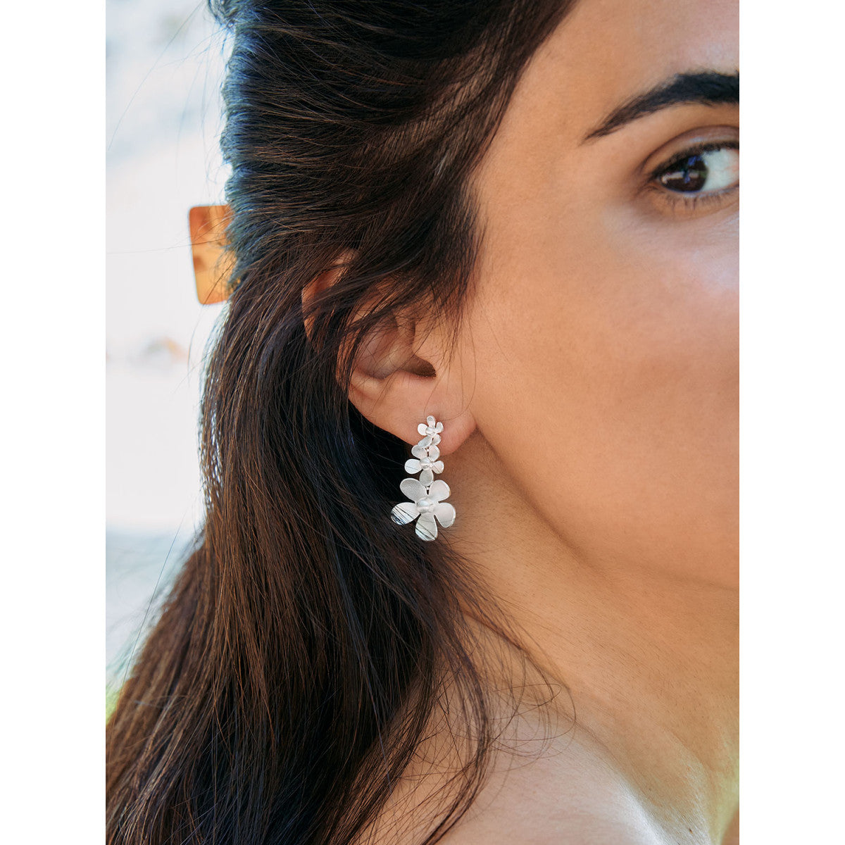 Delicate cascading flowers crafted in solid S925 silver. These earrings feature a soft matte finish and layered floral motifs that create a graceful, feminine look perfect for both everyday wear and special occasions. Lightweight, elegant, and beautifully detailed.