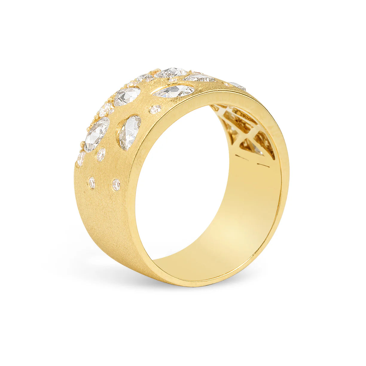Rose Cut Diamond Confetti Cigar Band in Yellow Gold