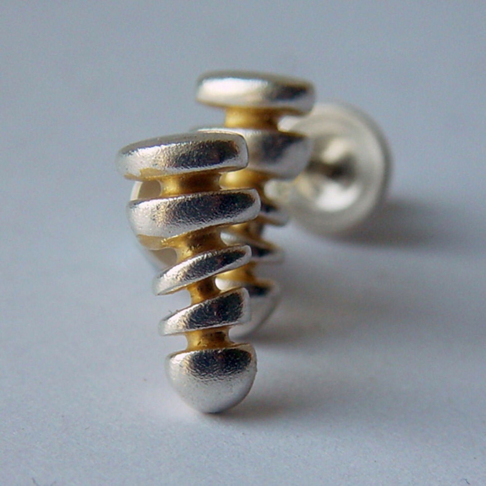 These unusual small pebble stack earrings have contrasting 22ct gold plating.