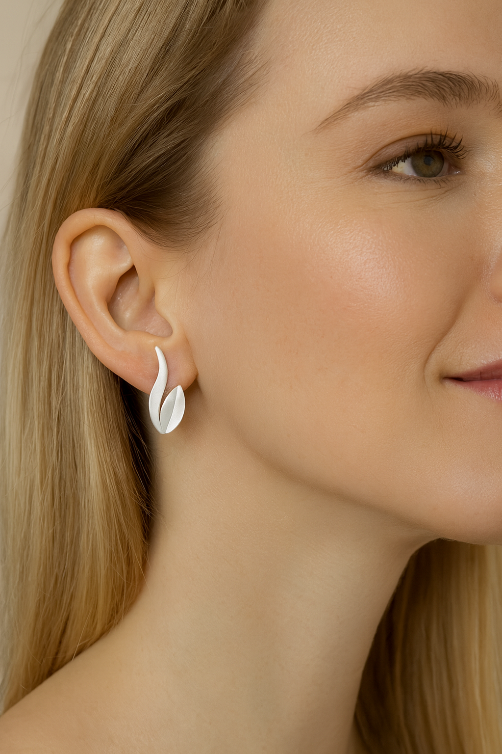 These charming silver post style earrings add a touch of nature-inspired elegance to any look. The simple elegant petal and curvy shapes forms like a Swan silhouette. Crafted from high-quality sterling silver with a brushed finish, they are lightweight and comfortable for all-day wear. Perfect for everyday styling or as a thoughtful gift for nature and jewelry lovers alike. 0.38" (9.7mm) wide and 0.62" (15.8mm) long