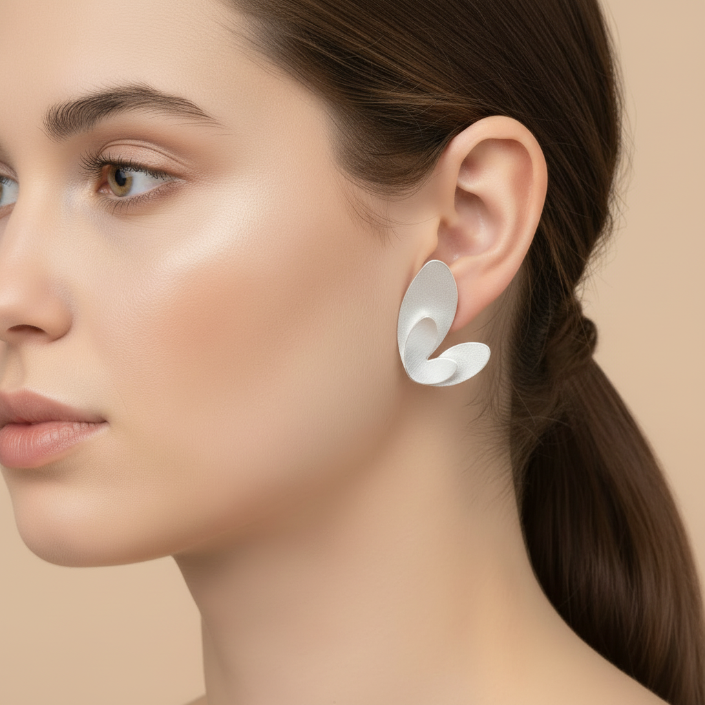 Sculptural Sterling Silver Petal Earrings