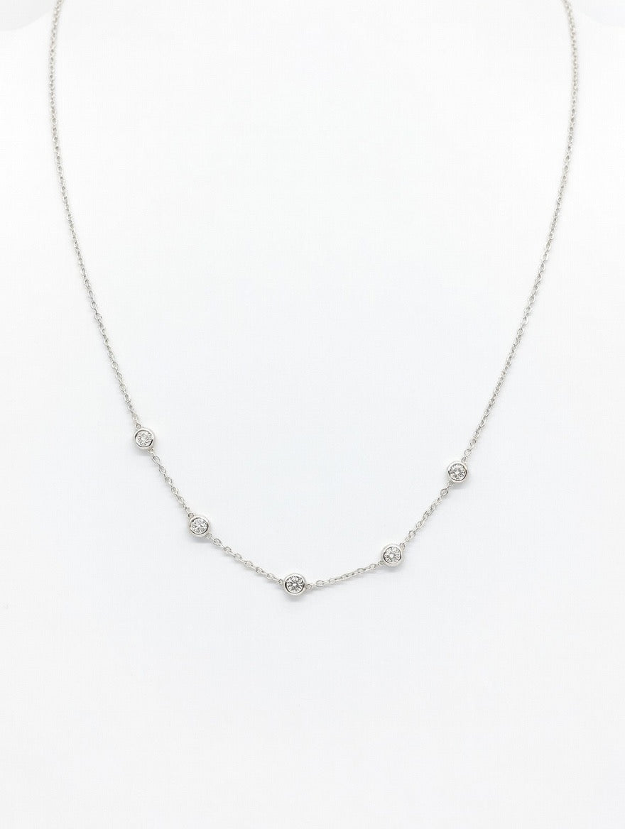 Five Lab-Created 2.5 MM Round Diamond Station Necklace in 14k White Gold