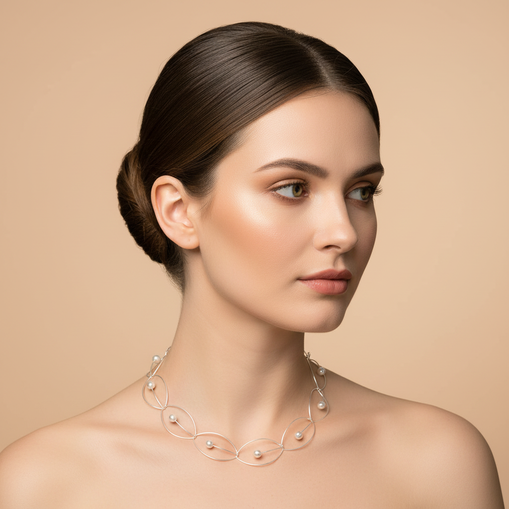Wide 3D Silver Ball and Marquise Shape Necklace