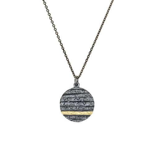 Round Textured Pendant with 18K Gold Stripe and Brilliant Diamond