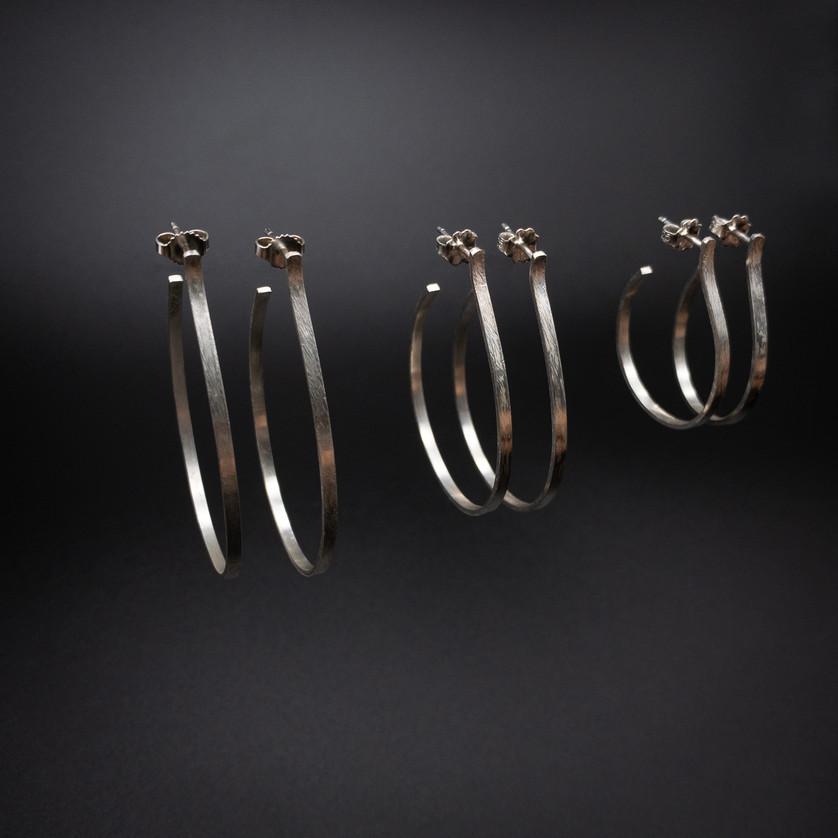 Medium Sterling Silver Hoops 2 mm x 1 mm Oxidized