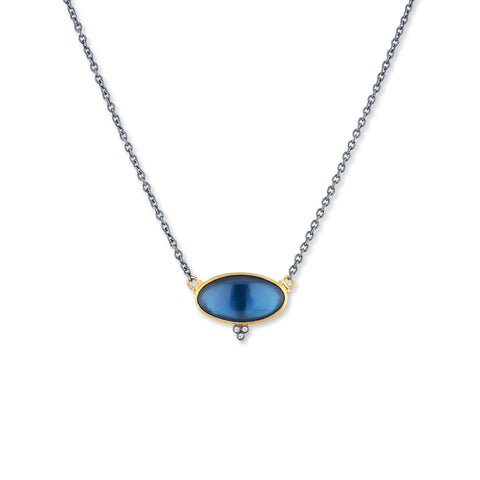Experience the beauty and versatility of our 22k gold "LARA" stacking ring. The oval cabochon sleeping beauty turquoise center is accentuated by diamonds on the side, while the satin finish and comfort fit shank provide lasting style and wearability. Add this 5x7mm ring to your collection for a touch of elegance.