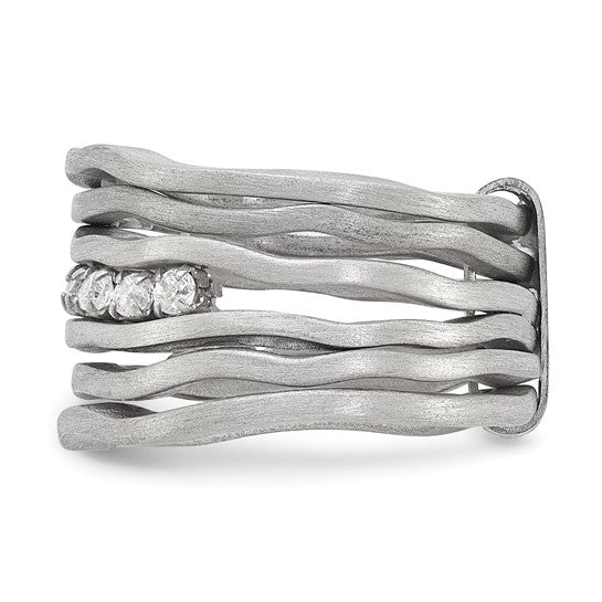 Make a modern statement with this sterling silver multi-row CZ ring, designed with a refined satin finish for understated elegance. Crafted from 925 sterling silver and enhanced with rhodium plating, this fashion ring offers lasting shine and tarnish resistance. Rows of sparkling cubic zirconia add brilliance, while the bold 12mm width creates a contemporary, eye-catching look. Perfect for elevating both everyday and special-occasion styles.