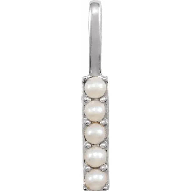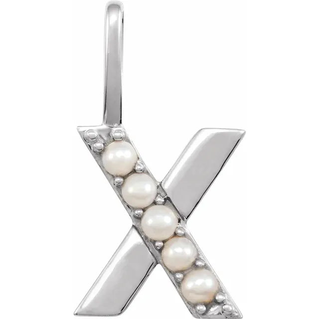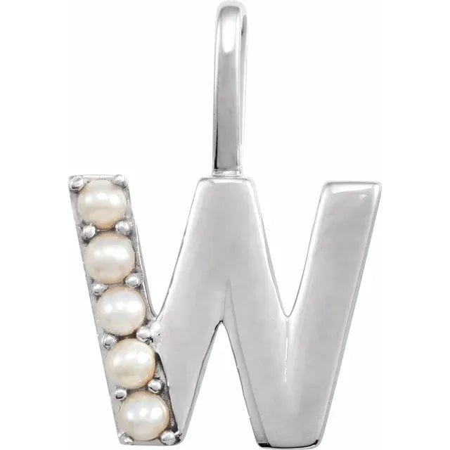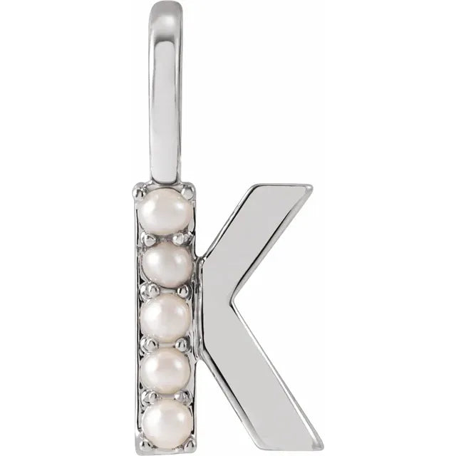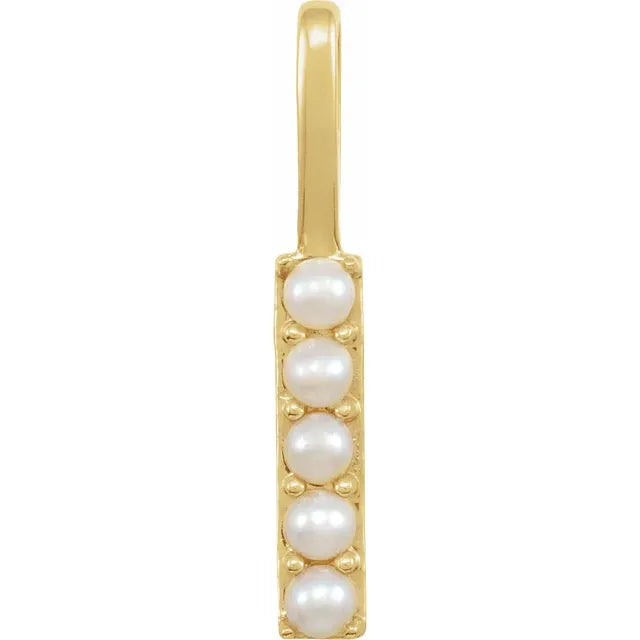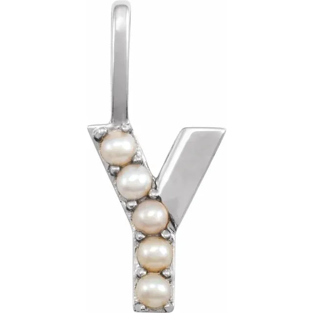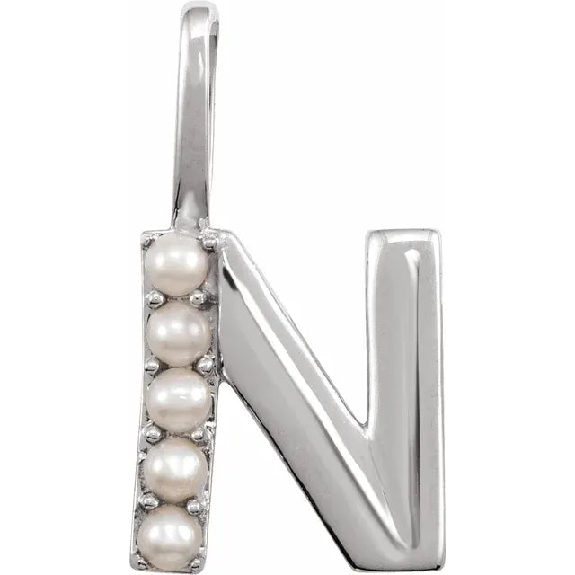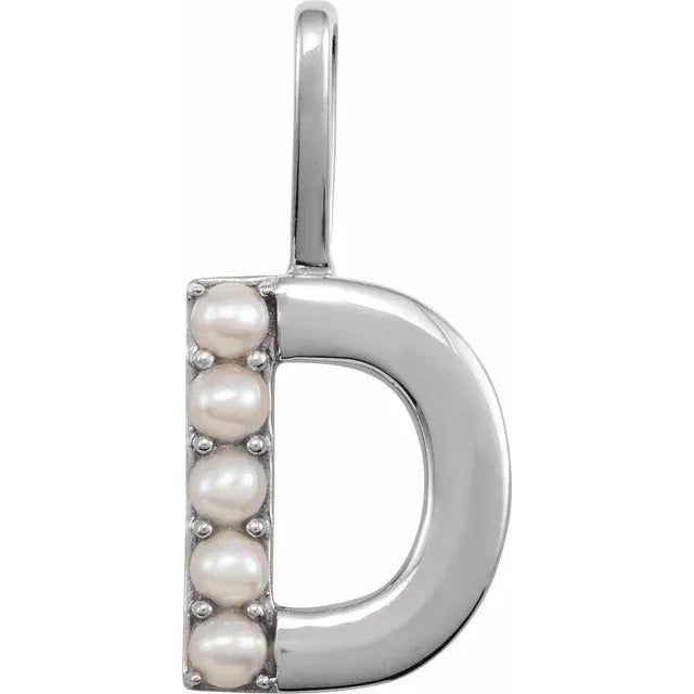 14K Yellow Gold Cultured White Freshwater Pearl Initial Charm Pendant