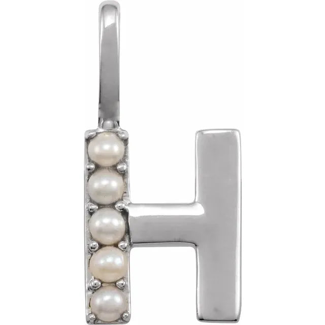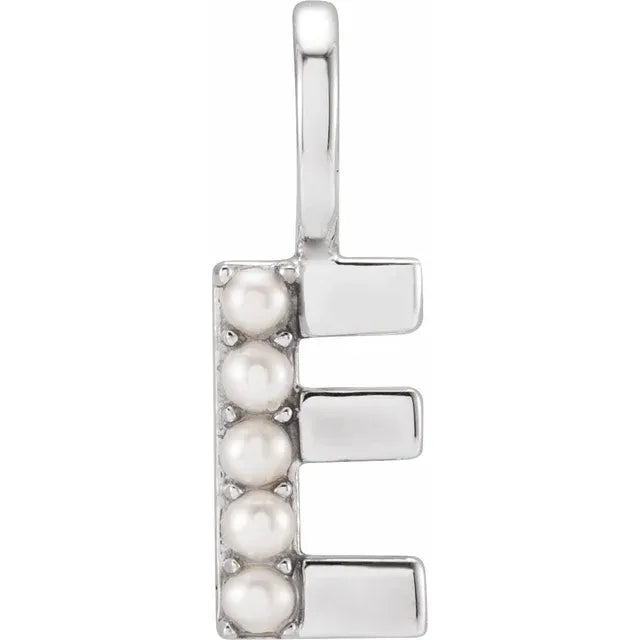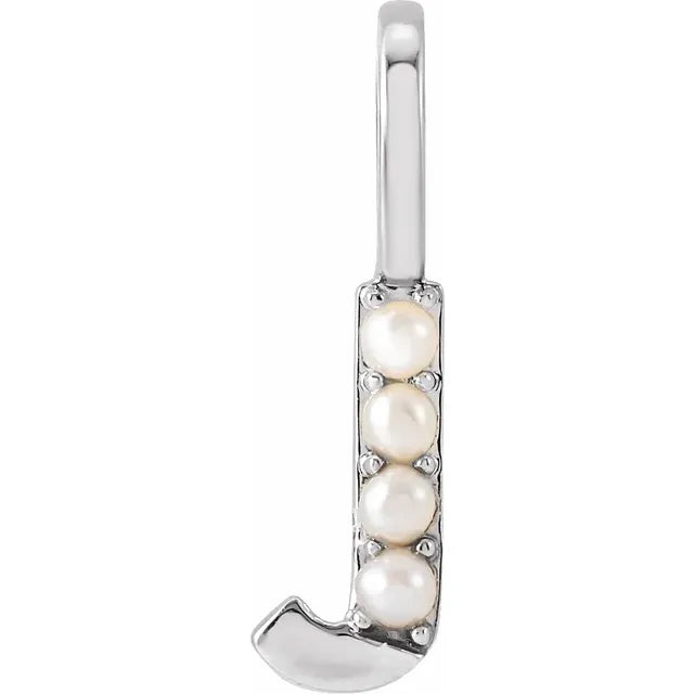 A timeless blend of elegance and personalization, this 14K yellow gold initial charm pendant features 2 mm cultured white freshwater pearls, beautifully set against a polished gold finish. The soft luster of the pearl adds a refined touch, making it a meaningful and stylish addition to any chain or layered look. Choose from 14k white gold, rose gold, and yellow gold, pendant only or with 14k gold 1mm diamond cut cable chain