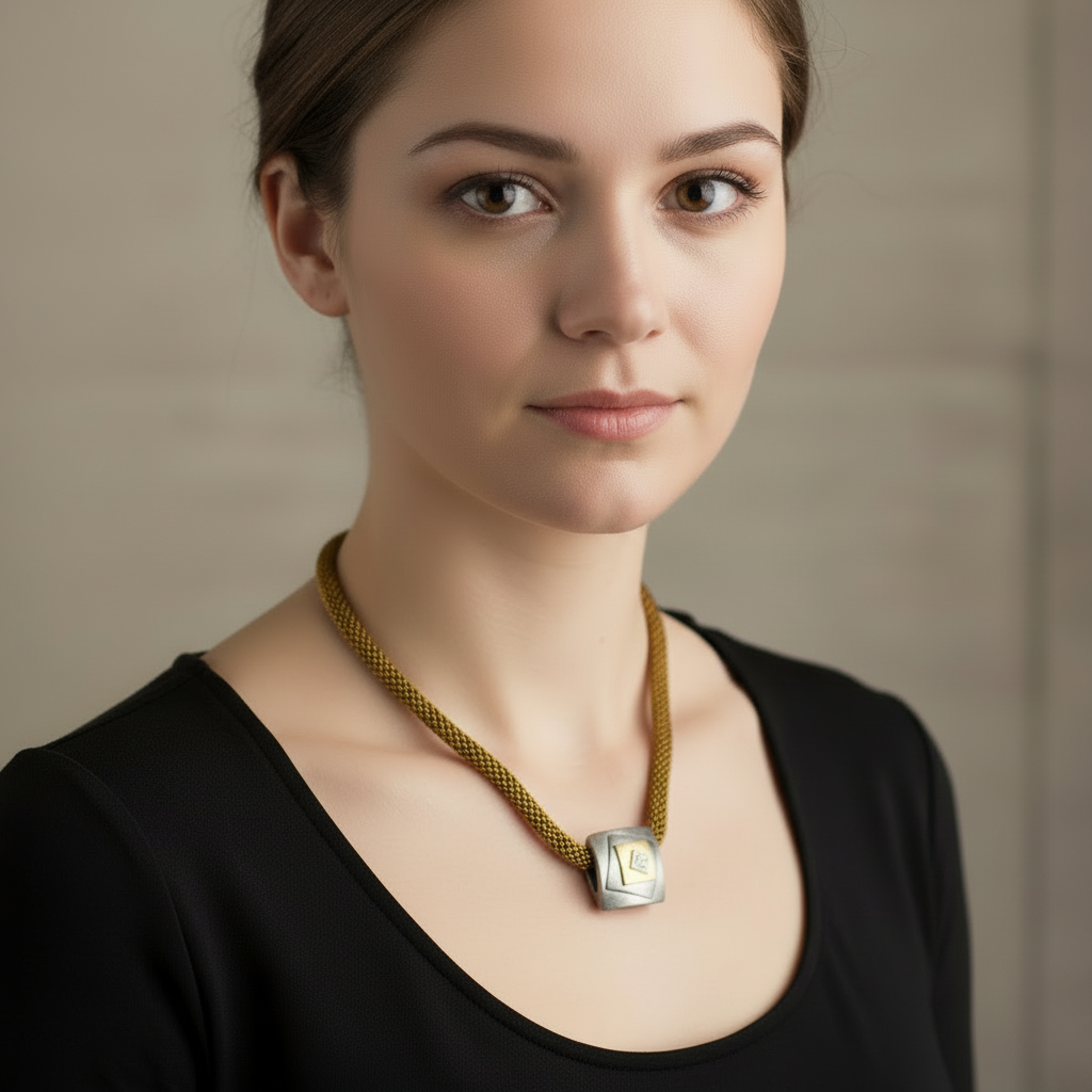 Diamond Square Pendant is made of 18K yellow gold and stainless steel accented with brilliant diamonds 0.09 CTW, VS1 clarity. Pendant can be purchased separately or together with various chain options.