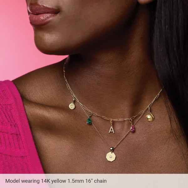 This timeless 14k gold diamond pendant features a 1/6 CTW round diamond in a bezel dropped from a diamond-cut cable chain with a polished finish. Available in 14k yellow gold, rose gold, and white gold. The necklace comes with a...