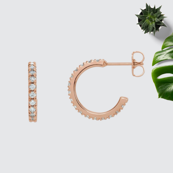 Elevate your style with these stunning 14K rose gold huggie hoop earrings. Featuring 5/8 carat total weight of ethically sourced, lab-grown diamonds, these earrings are delicately French-set to add sparkle to your look. The 15mm hoops are designed to hug...