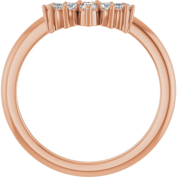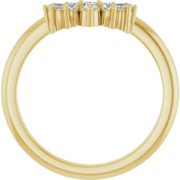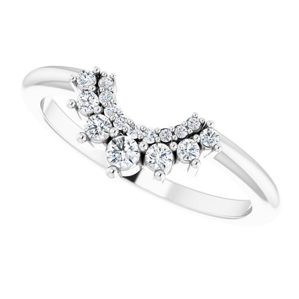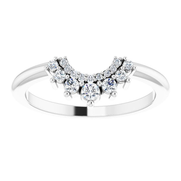 This 1/6 CTW diamond contour band is crafted from solid environmentally friendly recycled 14K gold, available in white, yellow, or rose gold finishes. Weighing approximately 2.96 grams, the ring features a polished surface and a standard fit with a shank...