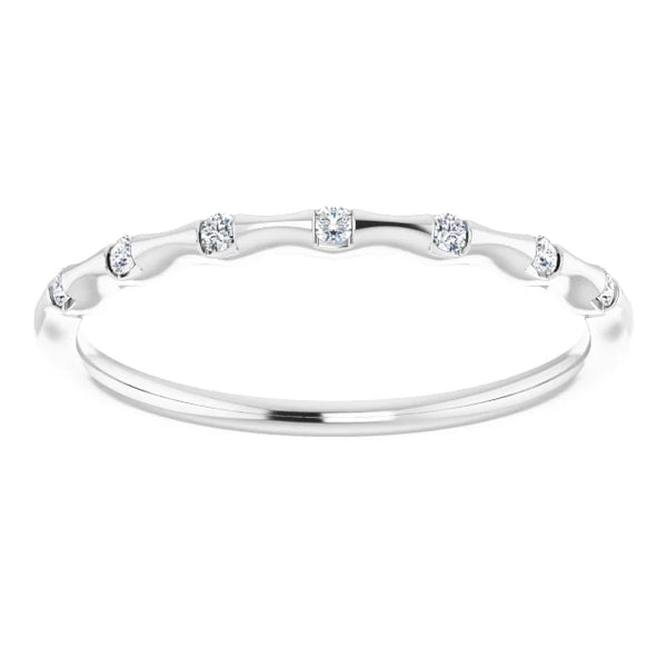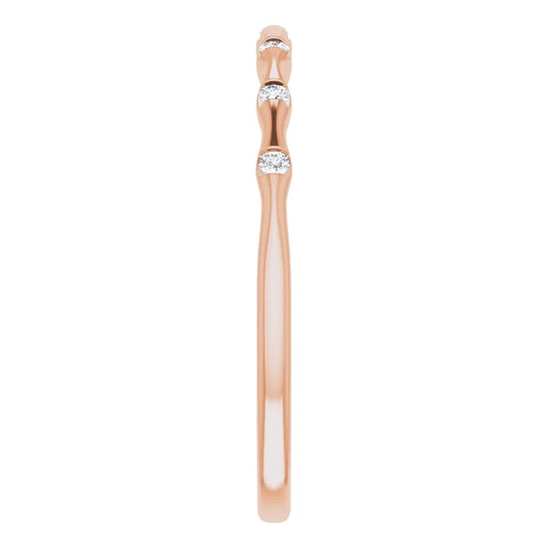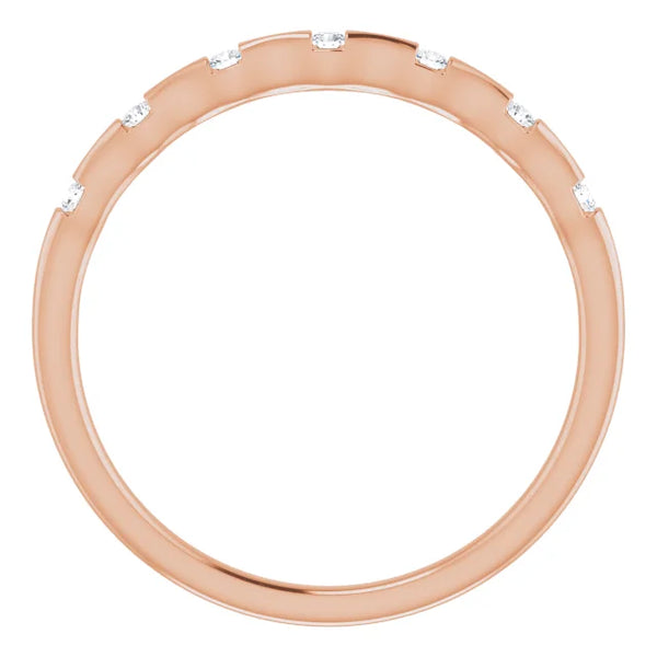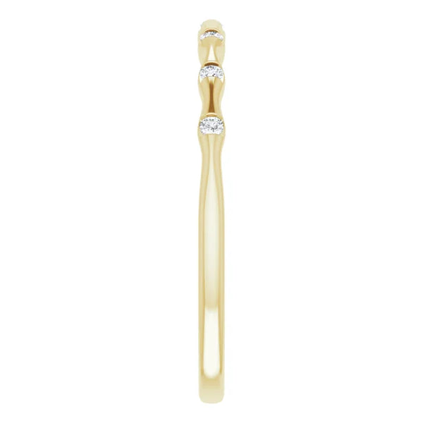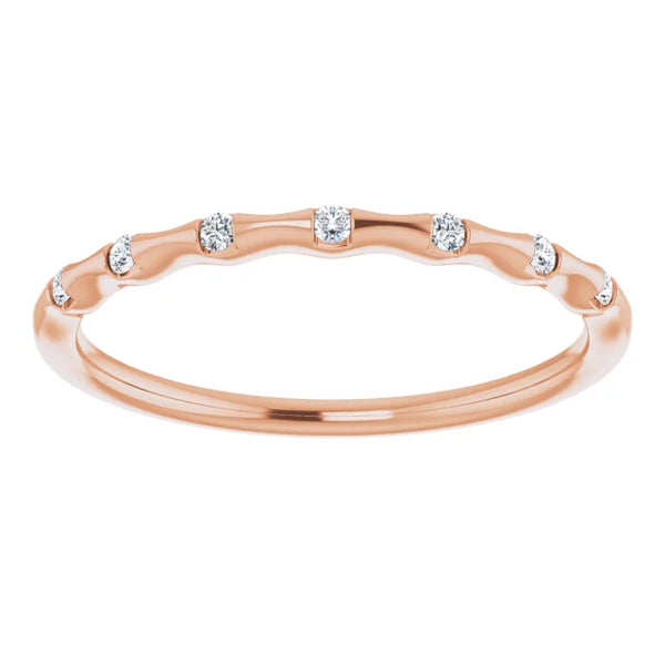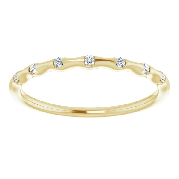 14K gold ring featured with seven faceted diamonds is great for stacking fashion or wedding bands. It comes in 14k rose gold, 14k yellow gold, or 14k white gold. Specifications: Approx. Shoulder Width: .72 mm Material: 14k Gold Surface Finish:...