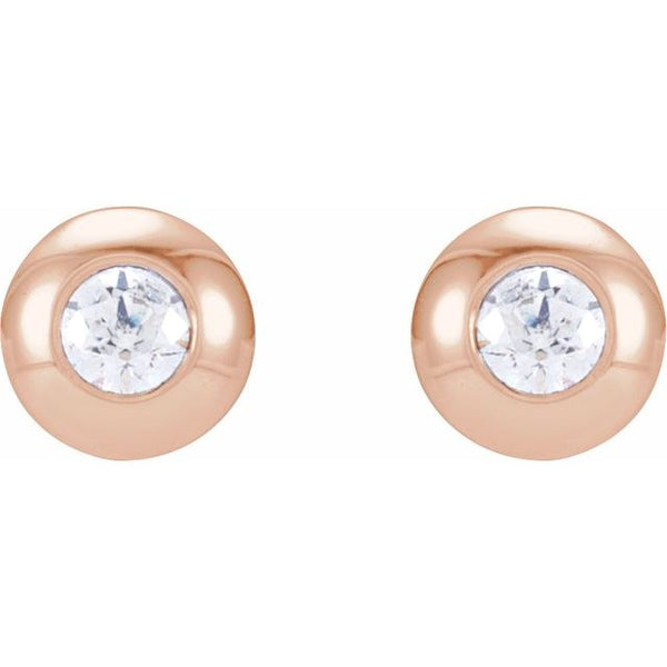 Understated elegance meets everyday wearability in these 14K gold earrings, each featuring a petite 2mm natural diamond set in a protective domed bezel. The G-H color diamonds (I1 clarity, 0.06 CTW total) offer authentic sparkle without demanding attention. Compact 4x4mm...