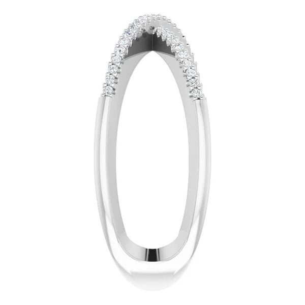 This solid 14K gold ring features a criss-cross design adorned with natural round diamonds totaling 1/6 CTW. The primary diamonds measure approximately 0.95 mm in diameter and are secured by four standard prongs. Additional diamonds, ranging from 0.85 mm to...