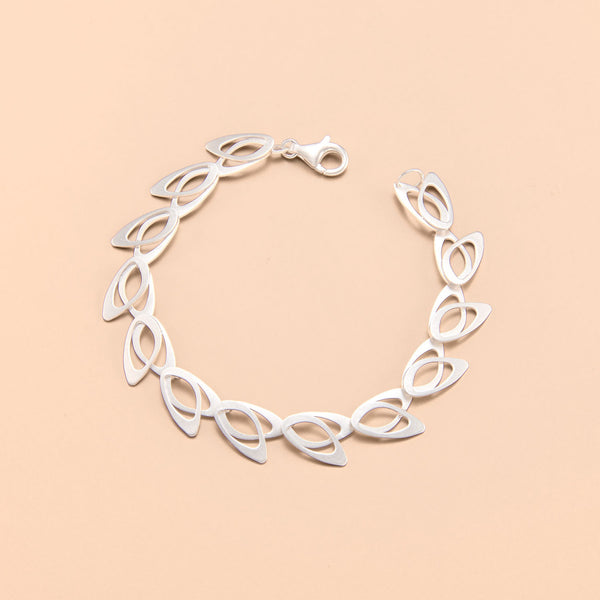 This intricate bracelet features an intricate 70’s wallpaper pattern with a mini-open design. Each link is composed of double layers of open asymmetric oval shape at 10.35mm wide.  At standard 7.25" long with an understated matte finish, this light and...