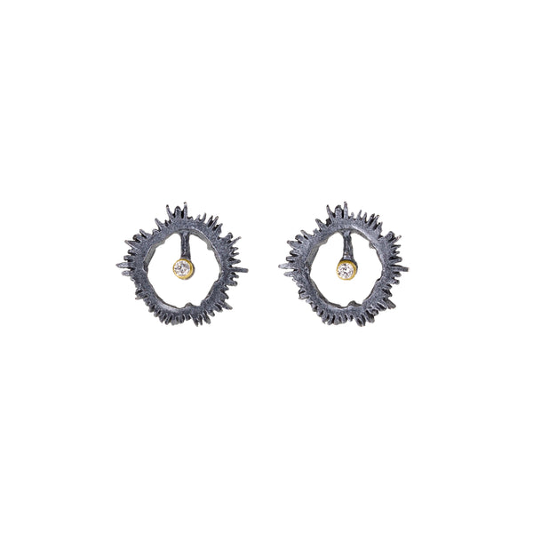 These striking post earrings showcase the masterful combination of sterling silver and 18k yellow gold, featuring a captivating brown diamond set in a secure 18k gold bezel. The contemporary edgy aesthetic delivers refined elegance with an avant-garde edge, making them...
