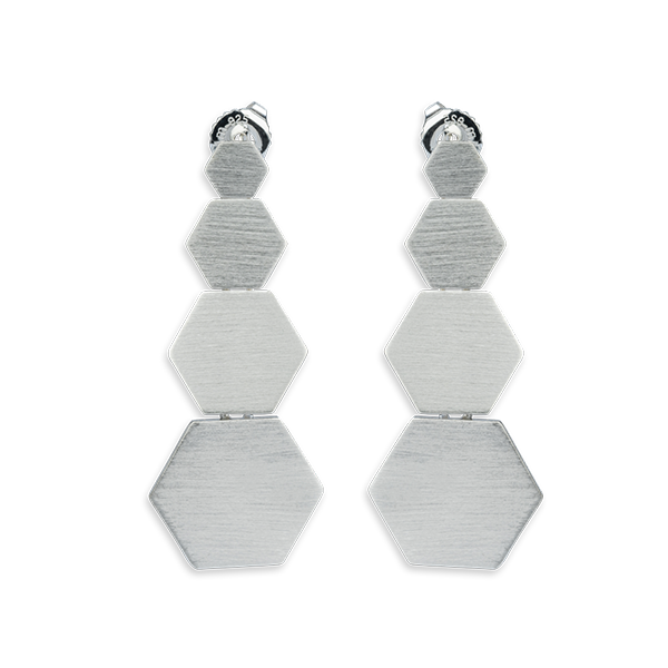 Bee Mine 4 Solid Hexagon post earringsĀ is made of four graduated sterling silver hexagon shape disc with understated matte finish, 1.6" long and 0.5" wide at the bottom hexagon This geometric and modern design is great for everyday wear or...