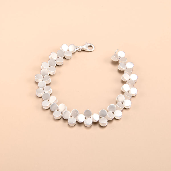 This elegant Clover bracelet features a contemporary design crafted from sterling silver with a subtle matte finish. Measuring 7.75" in length, it’s perfect for daily wear or special occasions. Each clover link is 12mm wide and connected with flexible links...
