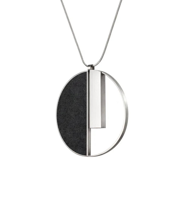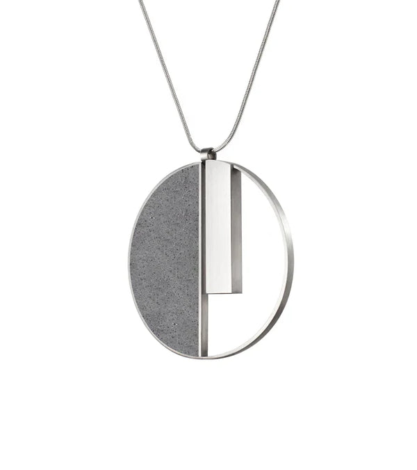 Inspired by the visionary work of Georg Muche and the Bauhaus movement, the Georg Necklace is a bold statement in minimalist design. Crafted from raw concrete infused with diamond dust and paired with brushed stainless steel, this pendant channels the...
