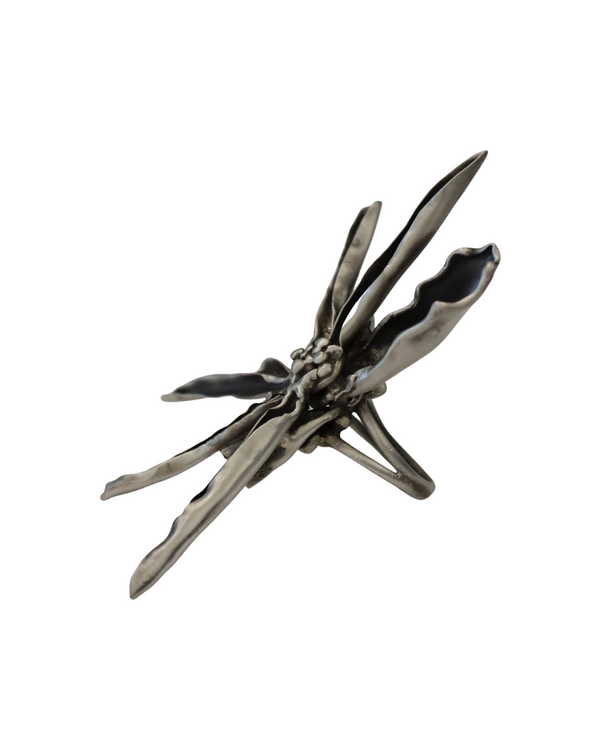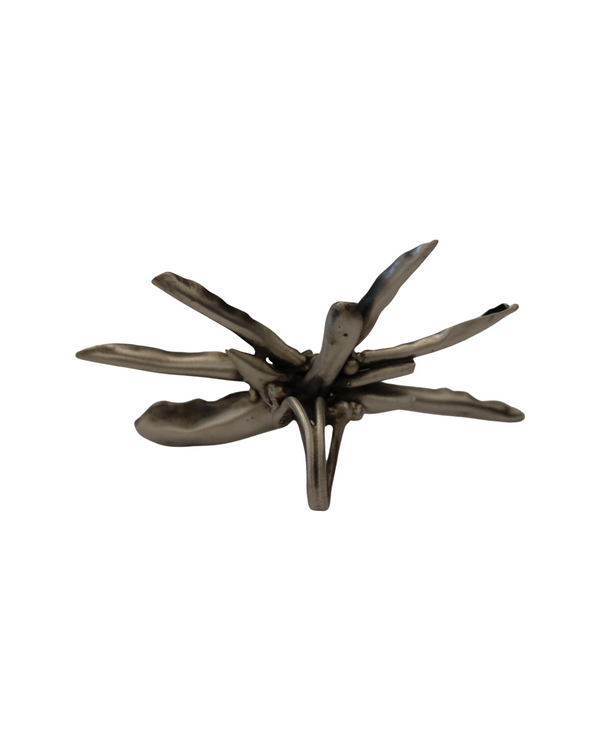 Industrial flower multi-petal ring, sterling silver with dark patina for industrial look, size 8 3.6" wide and 2.2 " long, handmade, one of a kind