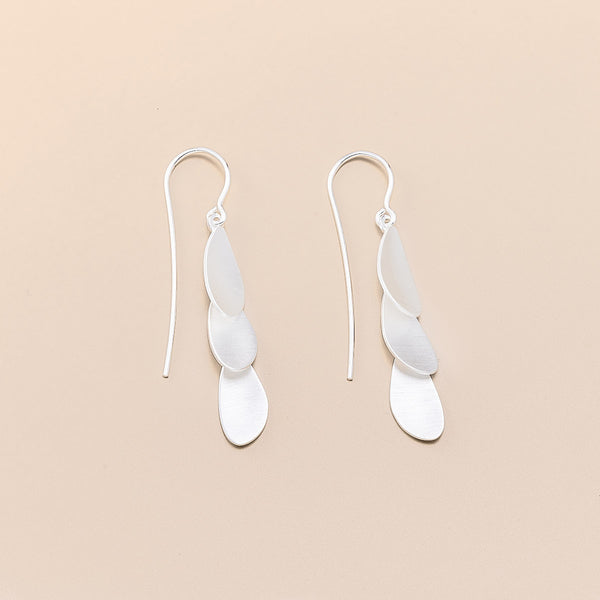 Delicate movement, effortless elegance. These sterling‐silver earrings feature three softly brushed petal shapes cascading in a gentle drop. Lightweight and graceful, they create a subtle shimmer with every turn — perfect for both everyday wear and refined occasions. Details: Material:...