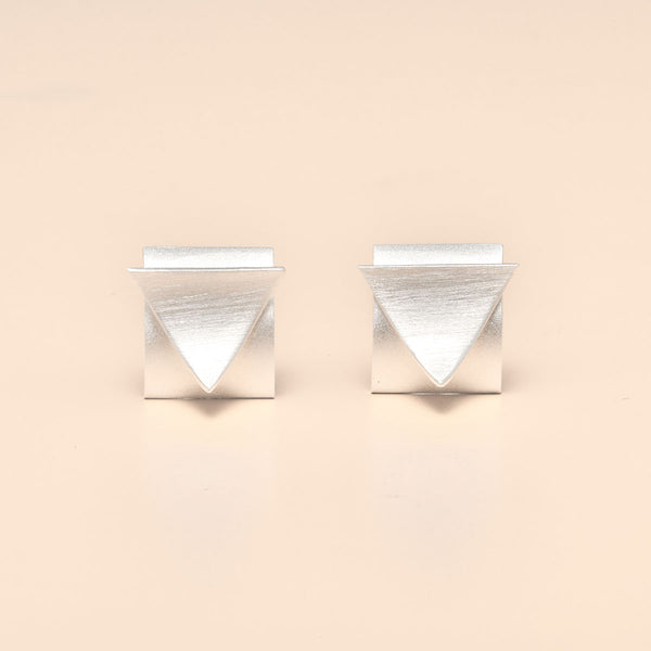 Bold lines, sculptural form. These sterling‐silver studs feature a brushed triangular element layered over a square base, creating a striking geometric silhouette. Minimalist yet expressive, they add a contemporary edge to any look — perfect for everyday style or a...