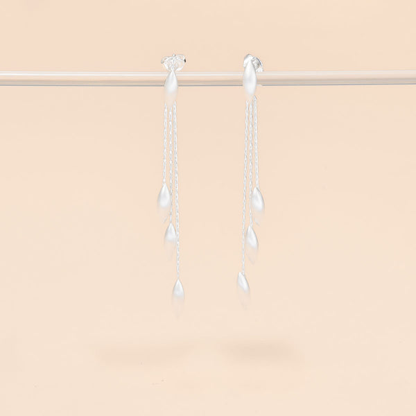 Elegant and weightless, these S925 silver earrings feature three delicate chains that fall gracefully from a smooth teardrop stud. Each strand ends with a soft, satin-finished drop, creating a fluid “raindrop” effect with every movement. Feminine, airy, and perfect for...