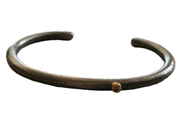 Sophisticated yet modern, the Micro Hammered Diamond Cuff blends sleek design with a touch of glamour. Crafted in textured silver with a 1.8mm off-white rose cut diamond and an elegant 14K yellow gold accent, this cuff creates a refined, unique...