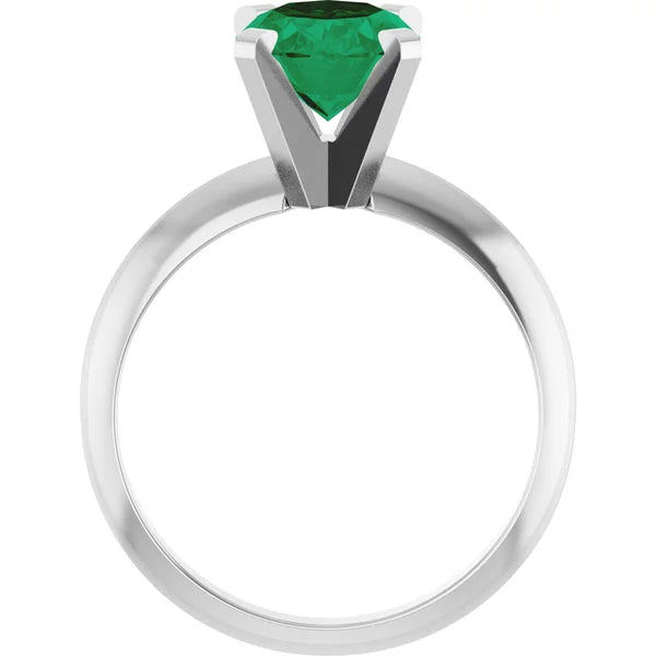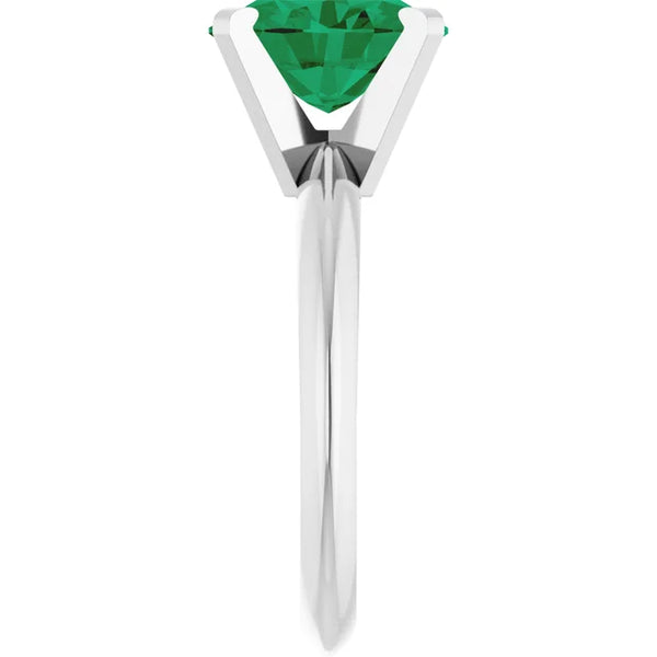 This platinum engagement ring features a stunning 9x7 mm oval lab-emerald (1.5 CT) secured by four standard prongs. Designed for finger size 7.5, the ring showcases refined proportions with a 2.5 mm shoulder width and 2.6 mm shoulder height, tapering...