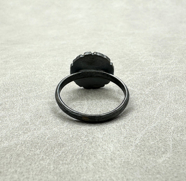 Ancient forest energy meets modern edge in the Small Redwood Ring. A textured “tree slice” of oxidized sterling silver forms the centerpiece, highlighted with warm 23K gold and a flush-set lab-grown diamond for a subtle flash of light. The organically...