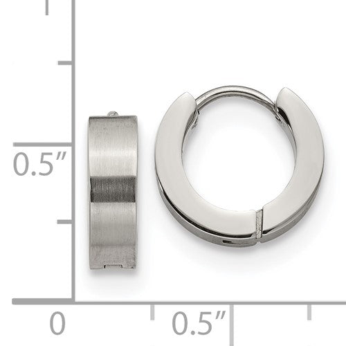 These minimalistic and contemporary stainless steel hinged hoop earrings measure 13x13mm wide and 4 mm thick. Available in both brushed and polished finish, it is a perfect pair for everyday wear. Product Details Earring Type: Hinged / Huggie Length of Item: 13...