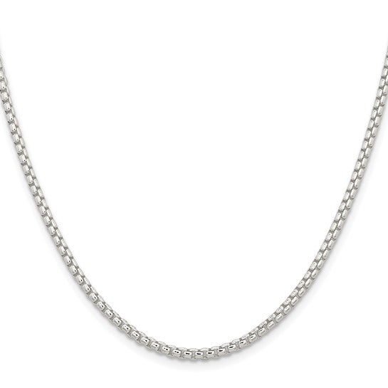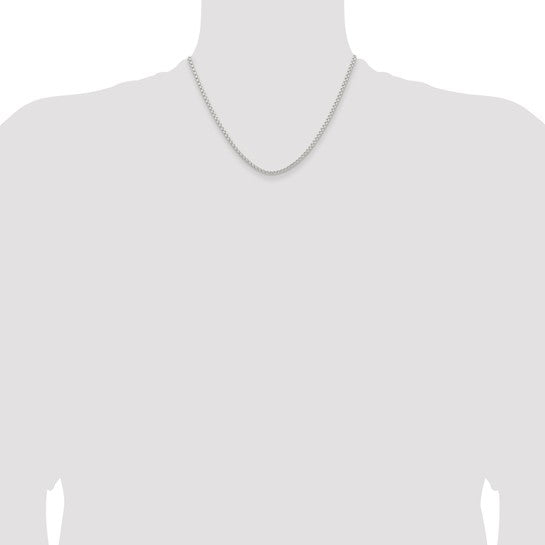 Description Expertly crafted in Italy, this Sterling Silver 2.6mm Round Box Chain is a timeless and sophisticated addition to your jewelry collection. The solid chain is coated with anti-tarnish finish and is perfect for showcasing your unique style. With a...