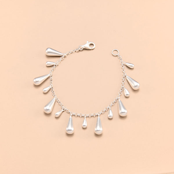Add a refined finishing touch to your everyday look with this elegant silver bracelet, designed to blend modern simplicity with timeless charm. Featuring delicate drop-shaped charms that catch the light beautifully, this piece adds subtle movement and sophistication to any...
