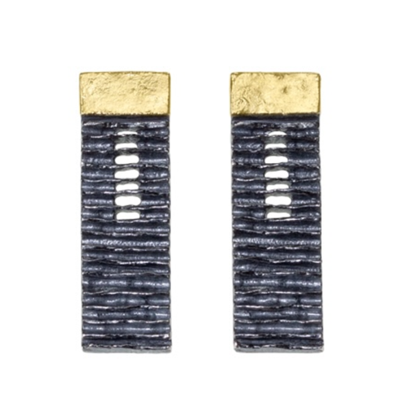 Modern and minimal, these S925 sterling silver earrings feature a distinctive textured surface and a bold G750 18K gold top accent. The rectangular shape with subtle openwork detailing adds a touch of architectural elegance, making them a perfect choice for...