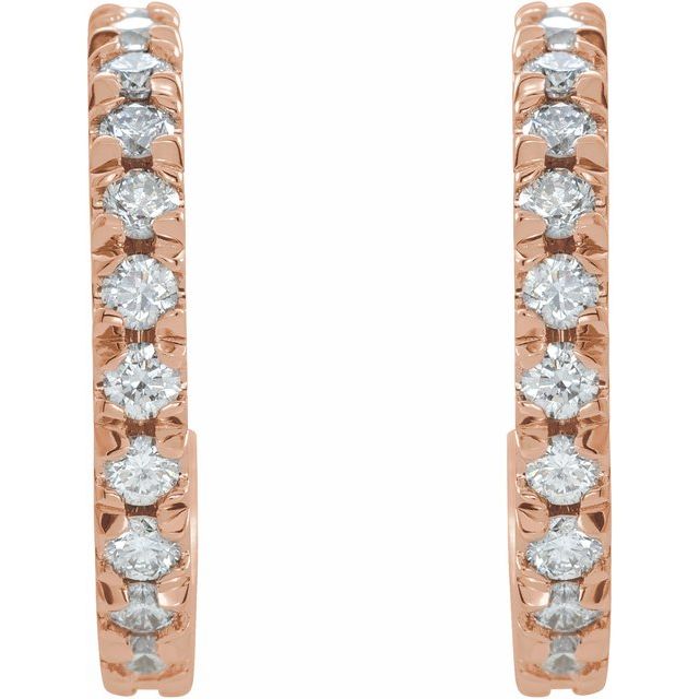 14K Rose Gold 5/8 CTW Lab-Grown Diamond French-Set 15mm Huggie Hoop Earrings
