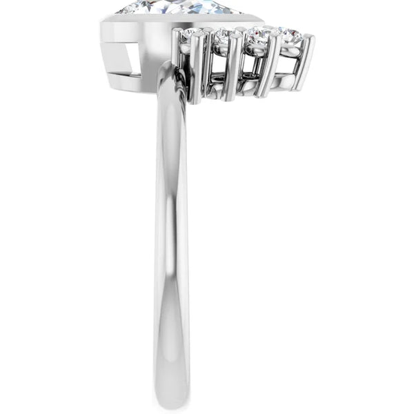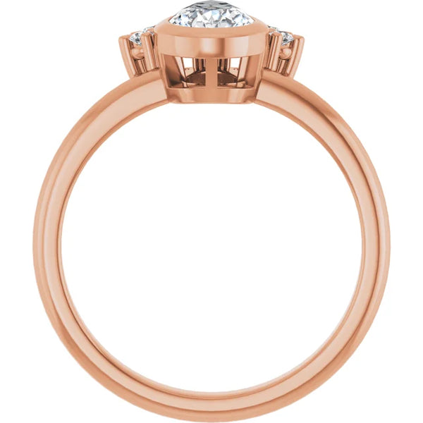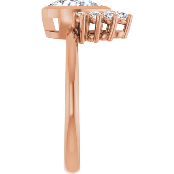 Crafted from 100% recycled solid gold, this 14k rose gold engagement ring showcases a certified pear-shaped D color, VVS1 clarity, lab-grown diamond approximately 8.28 mm x 5.21 mm in size, 0.83 carat. Certificated number is LG669442610. Its top spans 12.77...