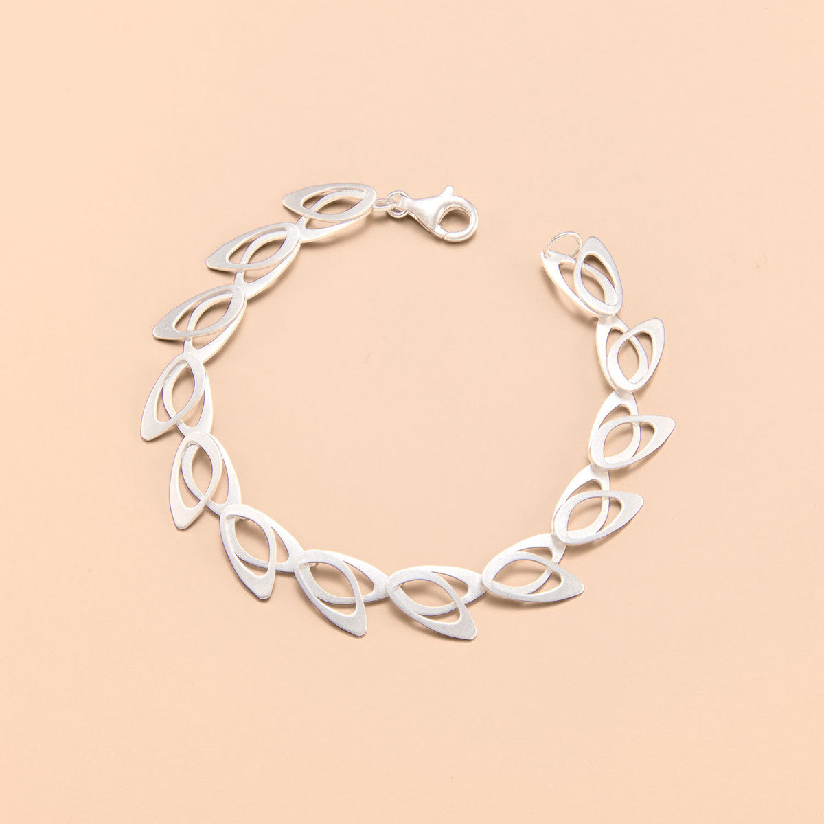 This intricate bracelet features an intricate 70’s wallpaper pattern with a mini-open design. Each link is composed of double layers of open asymmetric oval shape at 10.35mm wide. At standard 7.25" long with an understated matte finish, this light and airy bracelet adds an elegant, understated touch to any outfit. Its sleek silhouette and classic design imbue a timeless sophistication, making it an ideal choice for those who appreciate an artsy aesthetic. Matching necklace is also available. Check it out here.