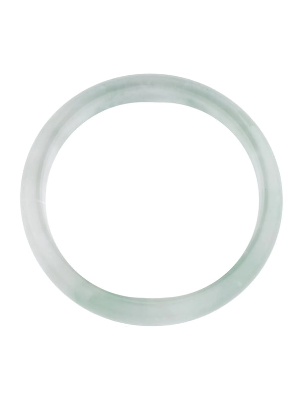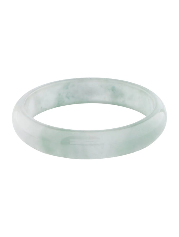 Graceful and timeless, this Jadeite Bangle Bracelet showcases the natural beauty of jadeite in both half round shape. Expertly shaped from a single jadeite stone, it features a balanced 0.5-inch width and a comfortable 7.5" inside circumference, ideal for medium to...