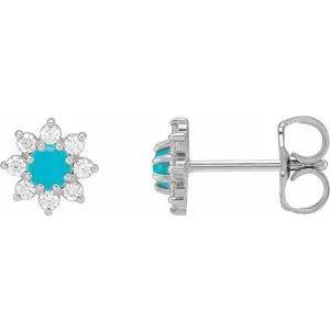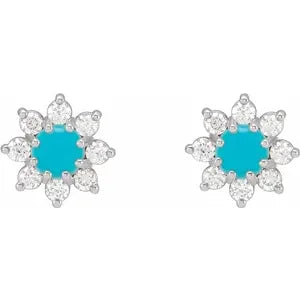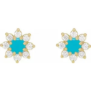 14K Gold Natural Turquoise & 1/8 CTW Natural Diamond Flower Earrings